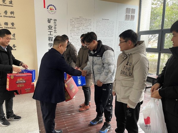 慰问过程中,张吉雄院长与留校学生亲切交谈,逐一询问了学生们的日常学习生活情况,并强调同学们留校期间一定要遵守规章制度,注意人身安全,做好疫情防控。张院长表示,矿业学院始终关心着每一位留校学生,希望同学们在学校合理安排好假期生活,注意安全,度过一个平安幸福的春节。随后,张吉雄院长代表学院向每一位假期留校学生发放了慰问礼包。