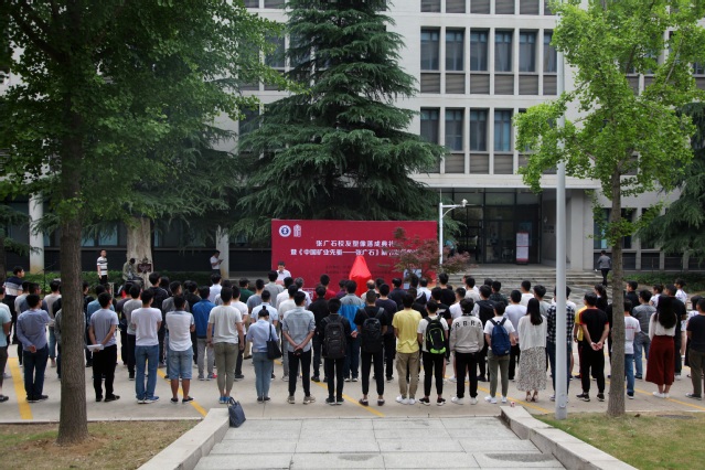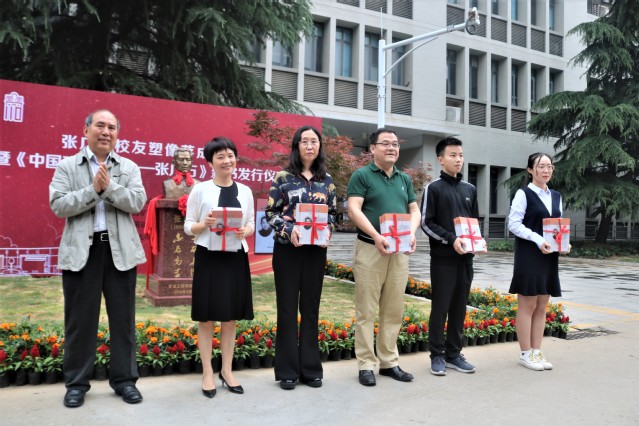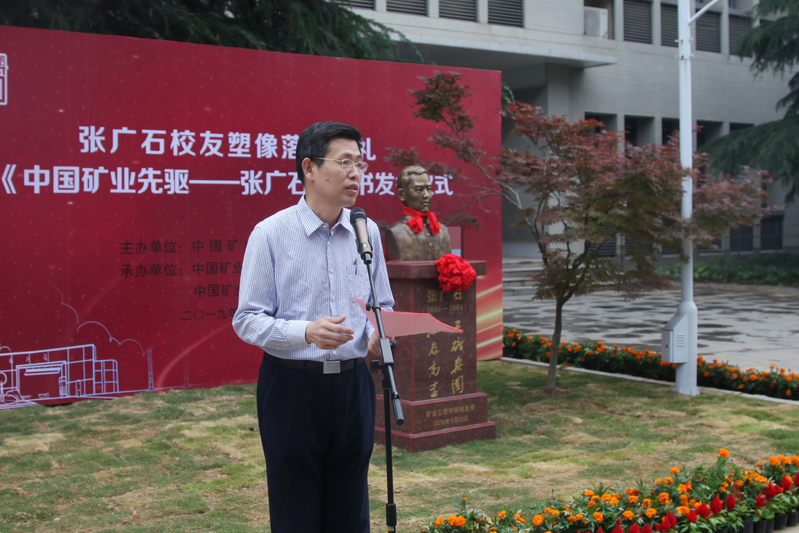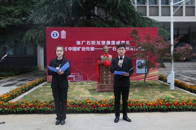张广石校友塑像落成典礼暨《中国矿业先驱——张广石》新书发行仪式在矿业学院楼门前举行。