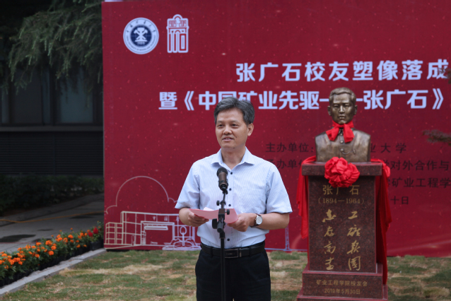 蔡世华副书记对张广石校友塑像落成和《中国矿业先驱——张广石》新书发行表示祝贺,并代表学校对张广石之子张印、刘新夫妇二人一直以来为弘扬张广石精神做出的努力和对学校事业发展的支持表示感谢,对他们来校参加建校110周年活动表示欢迎。他说,张广石校友“志存高远、工矿报国”的精神,与“好学力行、求是创新、艰苦奋斗、自强不息”的矿大精神一脉相承,是学校培养祖国能源矿业人才的真实写照和生动实践。希望学校各部门及相关学院能深入挖掘张广石精神的丰富内涵,加强对学生思想教育;广大青年学生要以张广石先生为榜样,练就过硬本领,共同为学校创建能源资源特色世界一流大学贡献力量。
