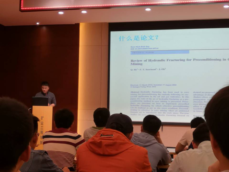 主办、矿业学院研究生会承办的庆祝建校110周年系列学术报告在矿业学院报告厅A604举行,本场报告会的主题为“高水平SCI论文写作经验分享会”。矿业学院副研究员、澳大利亚新南威尔士大学博士何青源受邀主讲,到场留学生、硕士及博士研究生近200人。