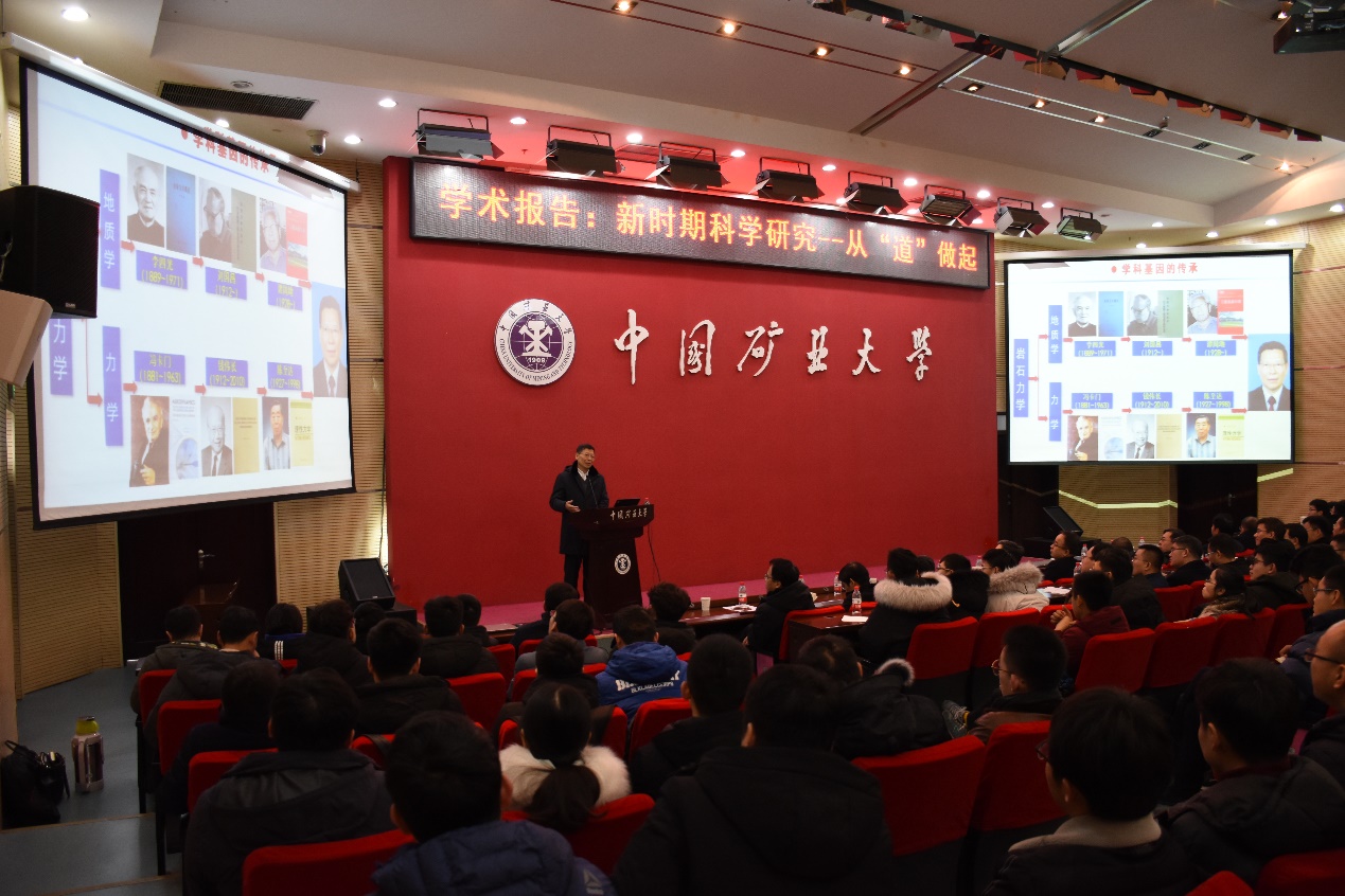 何满潮院士在报告中回顾了改革开放40年、着眼了新时代40年、展望了未来科技强国40年,对中国科学研究中的“道”、“器”、“术”之间的辩证关系做了精彩阐释;指出新时期科学研究要从“道”做起,解读了科技创新对国家、民族和政党发展的重要意义。何院士应用马克思剩余价值学说和“道”之价值模型论证了“道”的价值,得出了新时期剩余价值学说的重要推论。何院士讲述了自己在矿业之“道”的传承和发展,详细介绍了他在小变形到大变形、自然能源反季节循环利用、深井热害到新能源、矿井巷道可自动形成、瓦斯灾害变新能源等方向的科学探索和实践。交流环节,针对老师和同学提出的如何正确处理导师与研究生关系、如何高效处理横向与纵向科研项目关系等问题,何院士进行了详细解答。