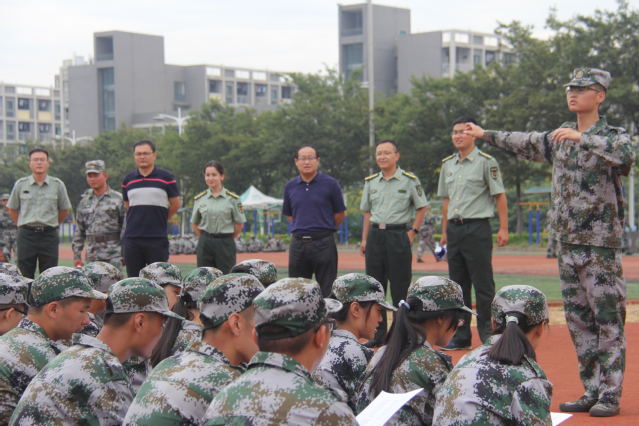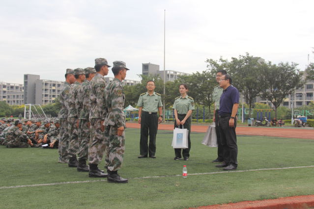党委书记陈新忠、党委副书记畅军亮、党政办主任王君一行前往梅南运动场,深入学院2018级新生军训场地,了解新生军训开展情况,看望和慰问了学院全体承训教官和参训学生。