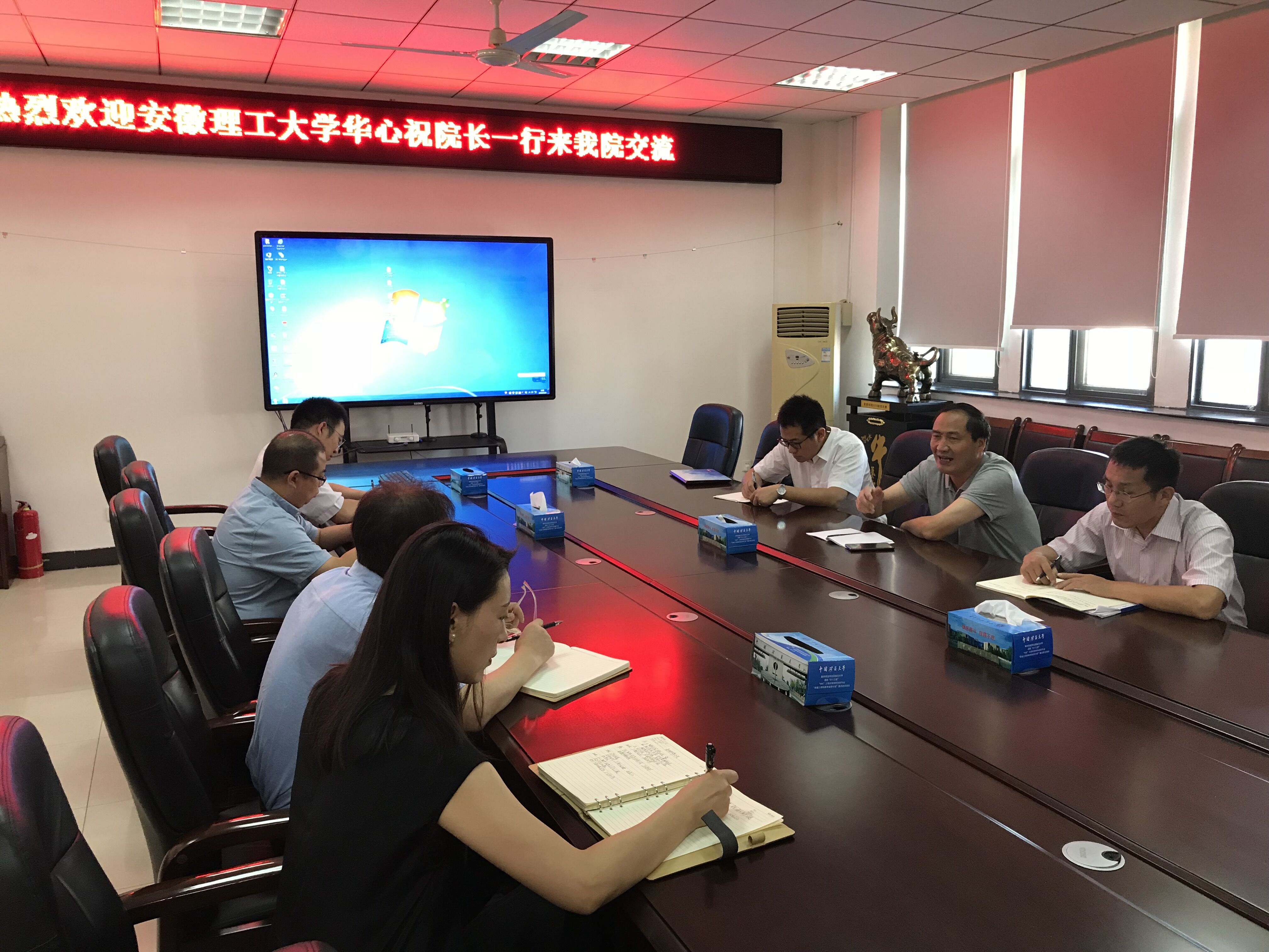7月24日上午,安徽理工大学能源与安全学院院长华心祝教授、采矿工程系副主任陈登红、交通工程教研室副主任刘钦节一行来我院交流工作,在学院A509会议室举行了座谈会,我院副院长王晓琳、教学实验中心主任马文顶、交通工程系主任李鑫、采矿工程系副主任徐营、教学实验中心高级实验师徐剑坤参加了座谈会。