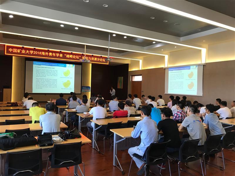 2018海外青年学者“越崎论坛”矿业与资源分论坛在矿业学院A604举行。来自美国、英国、澳大利亚等海外主要留学国家知名大学的四位青年学者受邀介绍了各自领域的相关研究工作,柏建彪教授、李桂臣教授、杨永良教授、冯小军博士、钱德雨博士,李许伟博士等教师及部分研究生参加了本次学术报告会。