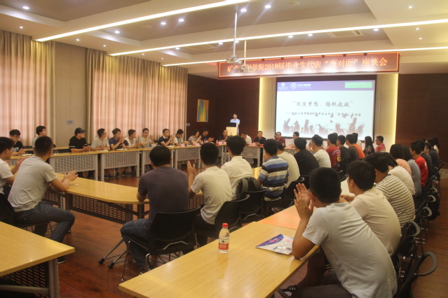 2018届毕业生代表“面对面”座谈会在矿业学院楼A604举行。院长张农、党委书记陈新忠、副书记畅军亮、副院长李学华、副院长王晓琳、各系主任和学院各科室的负责老师,以及本科、研究生、博士共32名优秀毕业生代表参加了座谈会。座谈会由畅军亮副书记主持。