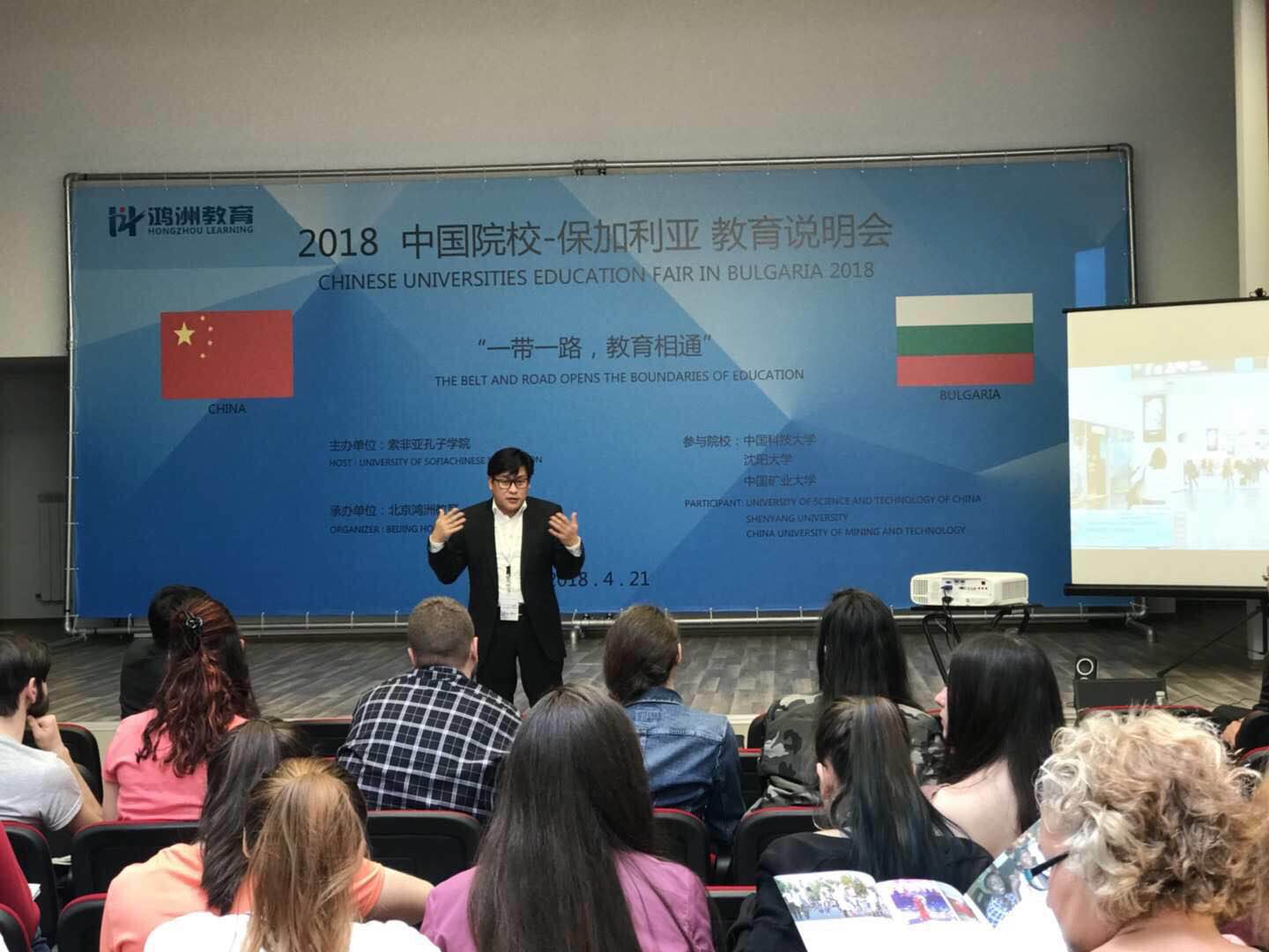 杨真教授面向保加利亚索菲亚高中学生宣讲我院办学理念和条件