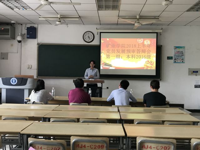 5月14日,矿业学院党委在博学4楼举行了2018上半年党员发展(转正)预审答辩会。答辩评委由学院党委书记陈新忠、副书记畅军亮、组织员潘晓龙老师以及全体专兼职辅导员、党员代表组成。