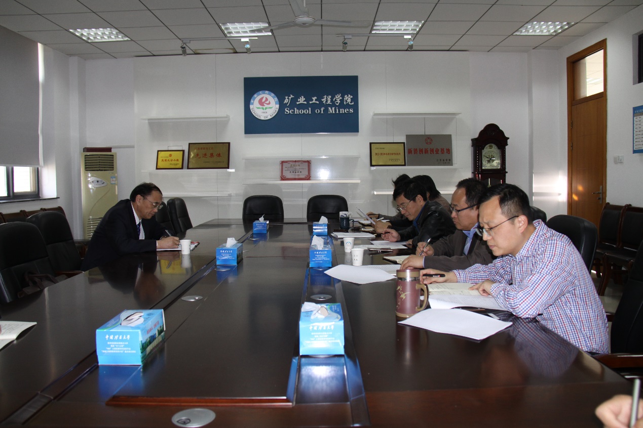 3月27日上午,校长葛世荣到我院就一流矿业学科建设工作展开调研。学院在矿业楼A509会议室召开座谈会,院党委书记陈新忠、院长张农、党委副书记畅军亮、教学副院长尚涛、行政副院长王晓琳参加了会议。