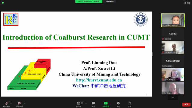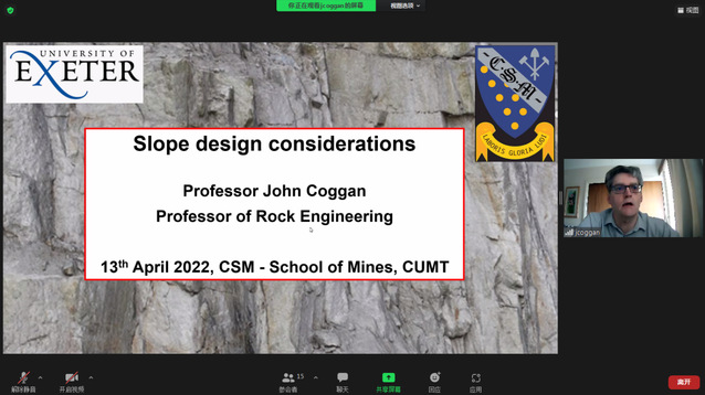 随后,会议进入主题报告阶段,来自埃克塞特大学坎伯恩矿业学院的Frances Wall教授、John Coggan教授、Hylke J. Glass教授、Pat Foster教授分别作了题为Integrating Primary Raw Materials into Circular Economy Research、Slope Design Considerations、Geometallurgy and Mine Planning和Safety Risk Management: Major Hazards & Control Effectiveness的主题报告。我院窦林名教授、黄鹏副教授、周伟教授和马立强教授先后作了题为Introduction of Coalburst Research in CUMT、Theory and Practice of Solid Backfill Coal Mining、Slope Designation and Analysis: Permanent and Static和Water Conservation Mining的主题报告。主题报告结束之后,双方参会人员结合个人研究方向和报告内容进行了深入交流与讨论,探寻潜在的科研合作机会,并同意会后就潜在合作机会进行进一步沟通,以期未来共同申请中英政府间合作项目和企业科研项目,夯实两校科研合作交流。