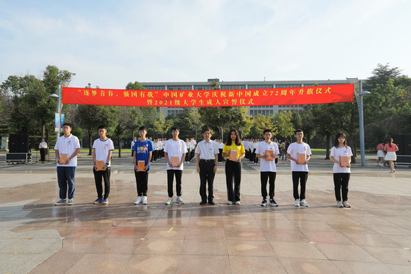 10月1日,“逐梦青春,强国有我”庆祝新中国成立72周年升旗仪式暨2021级大学生成人宣誓仪式在国旗广场举行。校领导刘波、宋学锋、曹德欣、赵建岭、李强、蔡世华,校党委常委、校长助理张万红,校党委常委、组织部部长张万海出席仪式。校团委书记谢发国主持仪式。学院领导班子全体成员,辅导员、新发展党员代表、2021级青年团员代表共同参加了升旗仪式。