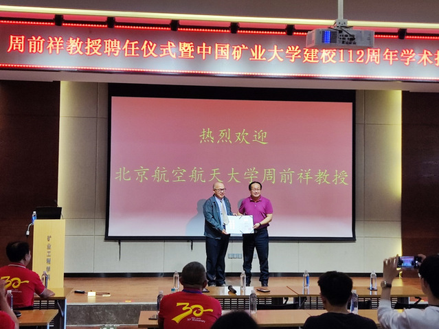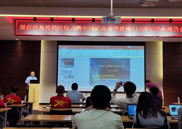 112周年校庆学术报告会。周前祥教授的学术报告题目为《从采矿工程到航天航空工程——关注人的因素》。