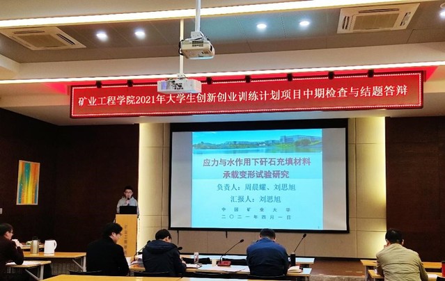 “本科教学工程”国家级大学生创新创业训练计划项目管理办法》(中矿大教字[2012]10号)向项目成员们详细说明了创新类型项目结题和中期检查通过基本条件。他指出开展大创项目旨在充分调动学生学习的积极性、主动性和创造性,增强学生创新能力。姚强岭要求参加答辩的学生明确学院宗旨,在接下来的项目开展过程中遇到困难及时反馈,学院将想办法帮助解决。