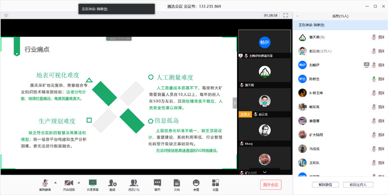 3月20日下午三点,为进一步提升“创青春”备赛作品质量,确保在2020年“创青春”省赛中再创佳绩,矿业学院在“腾讯会议”视频会议平台上进行线上培训。矿业学院党委书记陈新忠、党委副书记畅军亮、校团委副书记马成成、管理学院创业大赛国赛指导老师吴从新和肖国建老师、矿业学院参赛团队指导教师周伟、院团委书记赵云龙、辅导员姚文浩、董天阁,以及参赛团队全体成员参加了此次线上培训会,培训会由畅书记主持。