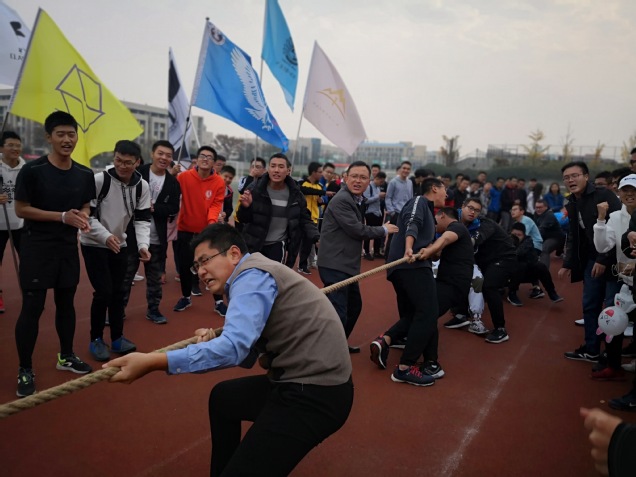 10日下午,各比赛项目结束后,举行了矿业类18-7班对阵15级代表队的拔河友谊比赛,18级辅导员何伟民和15级辅导员李同欢代表各自年级参赛,比赛吸引了各个年级同学前来加油助威,最终,矿业类18-7班2:0取得了比赛胜利。