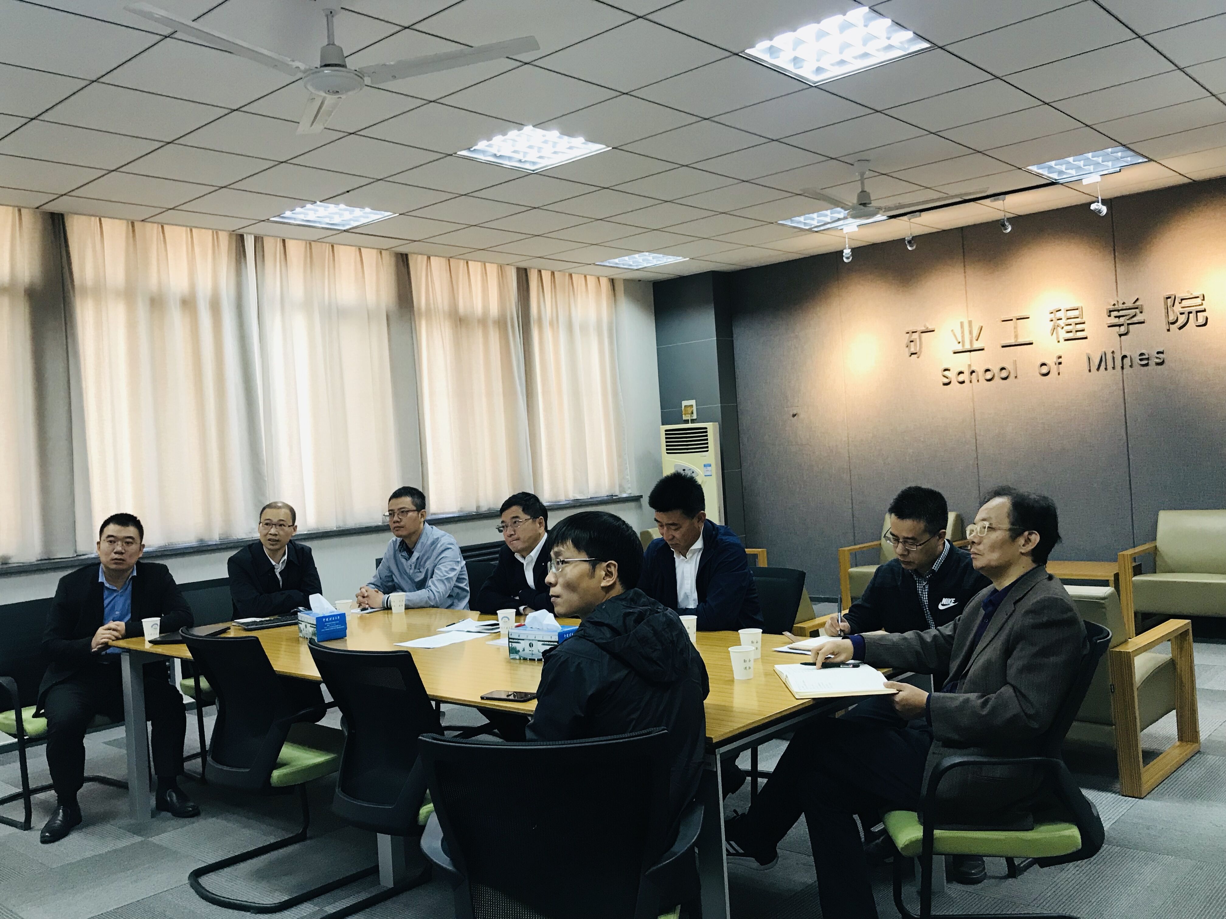 张农院长、采矿系万志军主任、实验室中心马文顶主任、徐营、姚强岭、杨真等教师参加会谈。