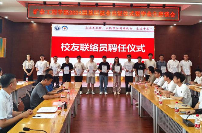 在学院楼A604隆重举行2024届基层就业出征仪式暨毕业生座谈会。学院党委书记闵涛、院长黄艳利、副书记高世杰、副院长王晓琳出席会议,各系所主任、办公室负责人、全体辅导员、基层就业学生代表及校友联络员代表共同参与。