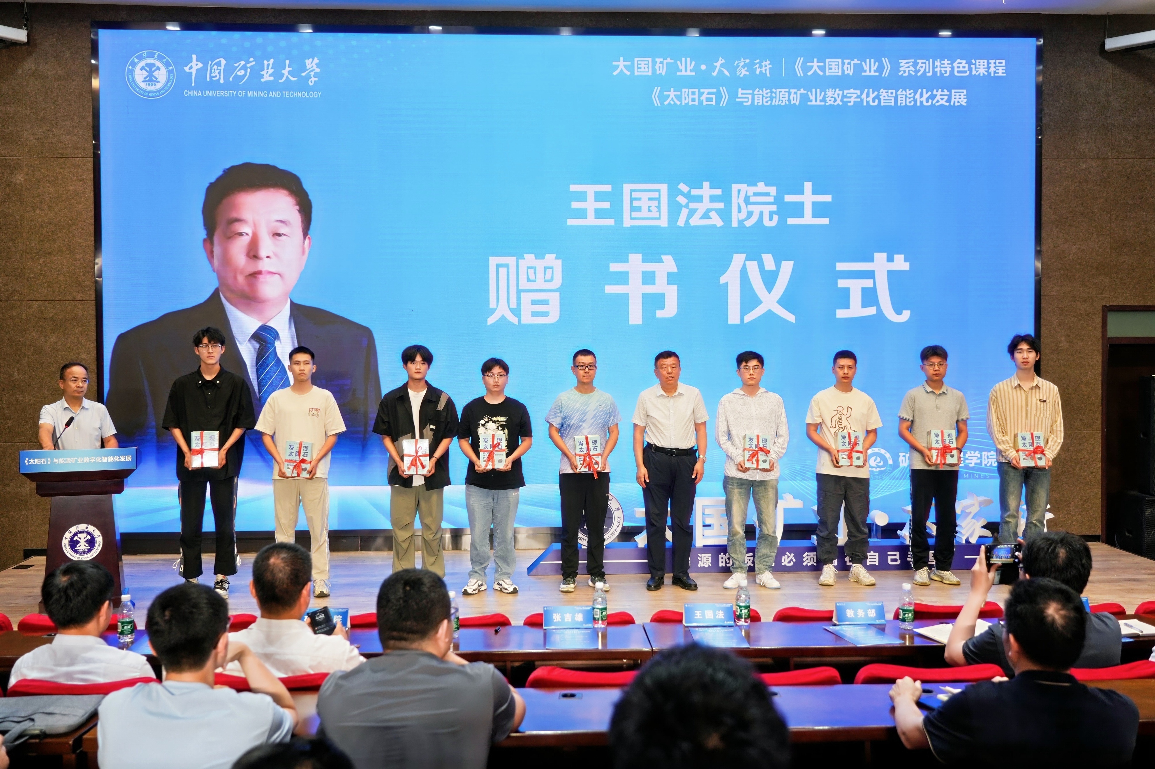 、机电工程学院师生代表接受捐赠。《太阳石》系列科普丛书由王国法院士牵头主编,近百位科学家参与编写。丛书包括《发现太阳石》《开采太阳石》《百变太阳石》《太阳石铸青山》四册,从地质学、采矿学、煤化学等多学科融合视角,系统介绍煤炭勘探与开发、清洁利用与转化、矿区生态保护与修复等知识,为社会、行业深度了解煤炭相关知识进行科普教育,服务于教学、科研和矿业从业工程技术人员。