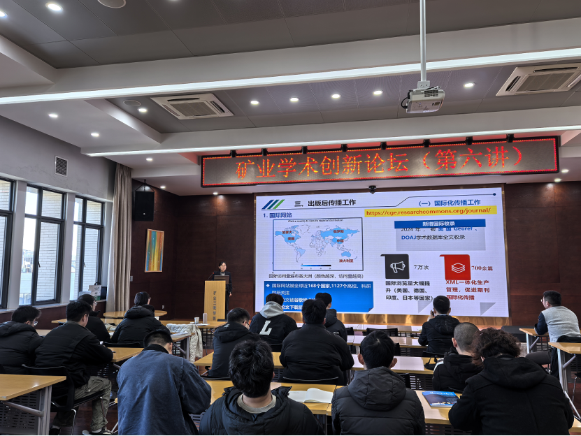 1月6日下午,《煤田地质与勘探》期刊执行主编晋香兰、编辑部期刊室主任范章群一行来我院作了题为“科技期刊的选题与投稿——以《煤田地质与勘探》为例”的学术报告。报告会在学院A604会议室举行,由新能源科学与工程系党支部书记严红主持。晋香兰主编从期刊选题策划与成效、投稿、审稿与编校和出版传播工作等方面进行了介绍,并以具体案例详细说明了稿件处理流程和投稿注意事项。报告结束后,晋香兰主编和范章群主任针对参会师生提出的问题,一一进行了详细解答。