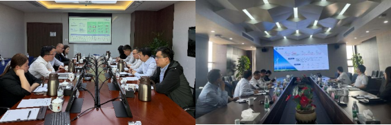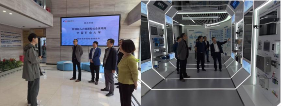 调研组与上海启源芯动力科技有限公司常务副总经理刘须宝、矿山事业部总经理张启亮座谈。王思华书记强调要依托党建共建机制,在储能装备研发、新能源人才培养等领域形成常态化合作。
