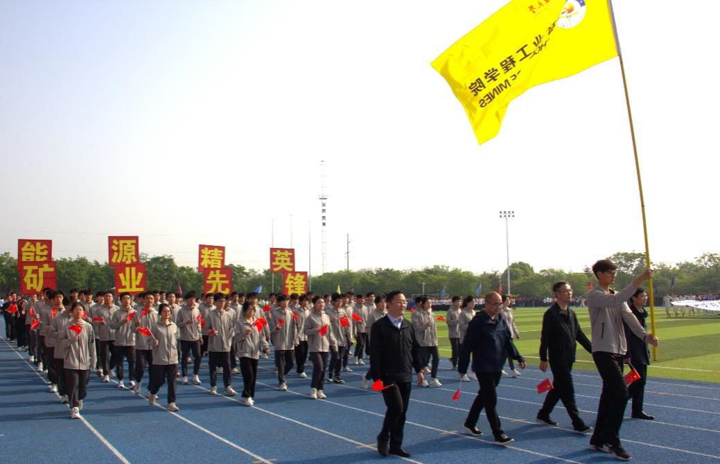 开幕式上,学院师生方阵精神抖擞、神采飞扬,迈着铿锵有力的步伐走过主席台,充分展现了“能源精英 矿业先锋”朝气蓬勃的精神活力和昂扬的精神风貌,并喊出“永远不服输,永远不向困难低头,永远争第一”的响亮口号。
