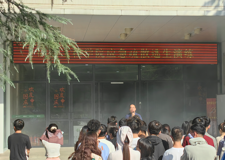 联合保卫处在学院楼开展应急疏散逃生演练。