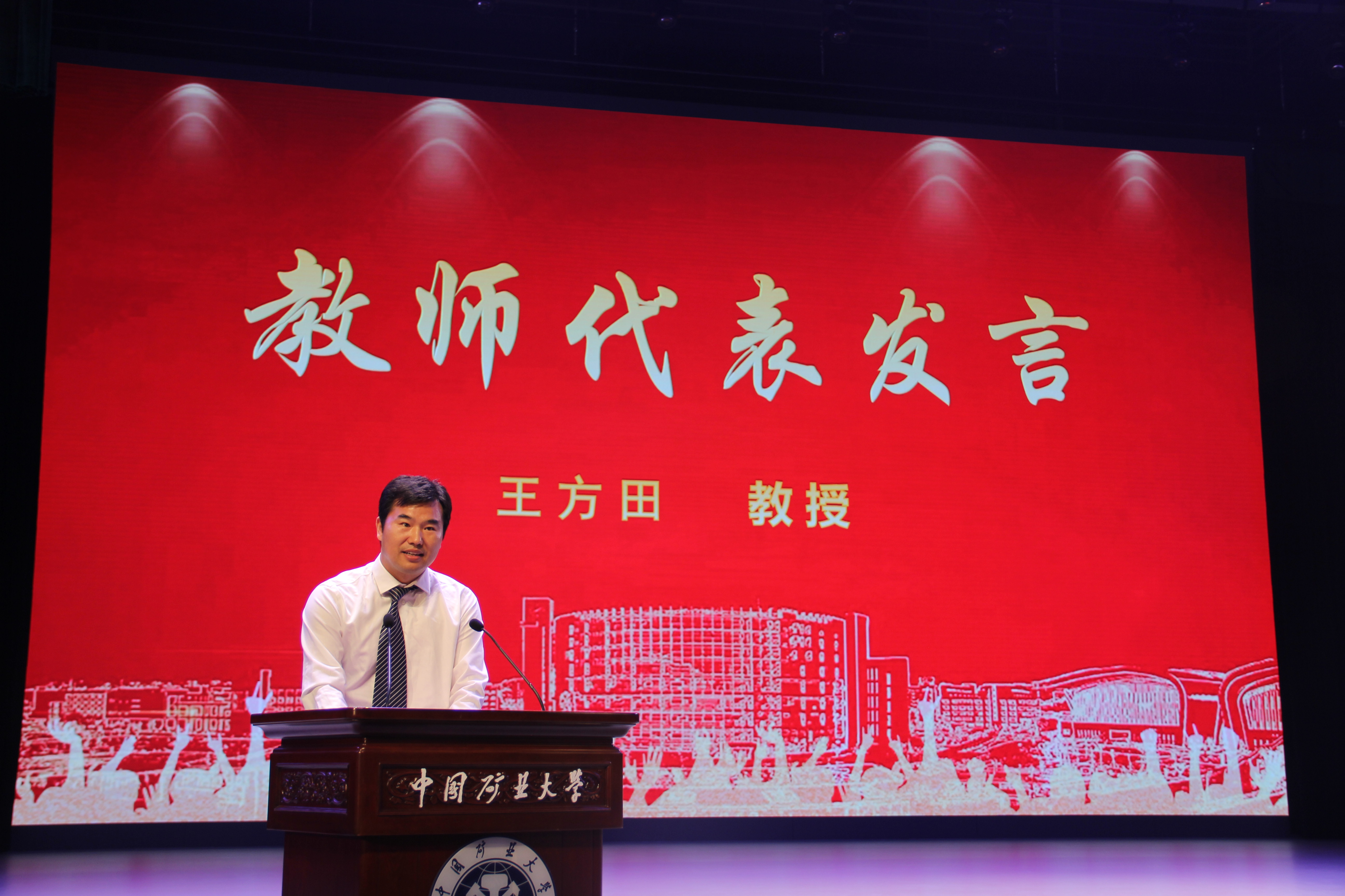 教师代表、采矿工程系王方田教授结合行业发展与学院底蕴,鼓励新生:一要静心致远方,尽快适应新环境,做好生涯规划,在课堂与实验室中积蓄力量;二要见贤思齐,以钱鸣高院士等“大先生”为榜样,在传承和创新中追求卓越;三要挺膺担当,把握行业智能化、绿色化转型机遇,将所学应用于行业发展,书写能源报国的青春答卷。