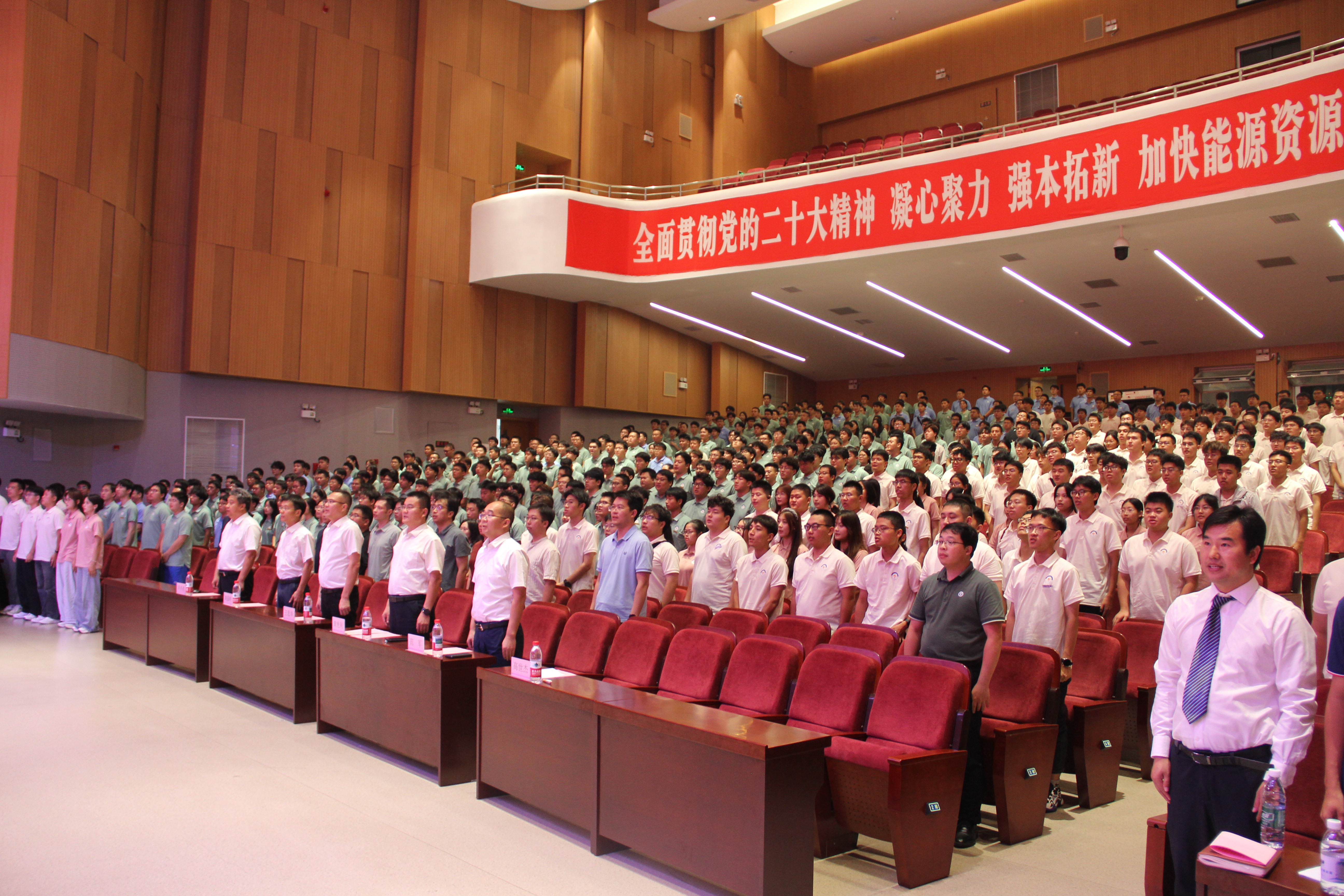 典礼在庄严的国歌声中拉开帷幕。学院院长黄艳利以“立志·立身·立行”为题讲授开学第一课。他勉励新生:一要以“能源报国”立志,担民族复兴之任。 能源是国之命脉,作为能源体系“压舱石” 的煤炭行业更肩负着高质量发展的时代重任。希望新生传承“永远不服输、永远不向困难低头、永远争第一”的“三永远”精神,将 “爱国奋斗” 深植心中,在以中国式现代化推进中华民族伟大复兴的新征程上,完成 “超越自我” 的成长蜕变。二要以“五育融通”立身,奠全面发展之基。 学院有顶尖的学科支撑,矿业工程学科作为国家“双一流”建设学科,连续五年蝉联QS世界大学学科排名前20,拥有全国重点实验室等顶尖平台,和以杰青、万人计划领军人才为代表的师资队伍,将为新生成长提供坚实支撑。希望大家主动跳出“舒适区”,既做实验室里的“创新达人”,也当社会实践的“实干家”,在全面发展中成长为栋梁之才。三要以“知行互促”立行,炼解决难题之能。当前深部开采、智能装备、绿色低碳等领域仍有诸多“卡脖子”难题亟待突破,学院已在全国14个煤炭基地建立实践基地。希望新生以“自找苦吃”的精神,将论文写在祖国的矿山上,用真才实学为煤炭行业绿色智能转型贡献力量,成长为能源强国的建设者和接班人。
