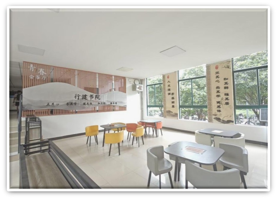 行健书院践行以美育人、以文化人理念,开展学术文化学生论坛、明礼修身大讲堂、名家著作读书分享、非遗校园体验实践等活动,通过环境浸润滋养心灵,培养学生高雅的审美情趣。设置青春会客厅、图书漂流吧,营造书香与美学交融的氛围,定格学子成长瞬间,展示行健团队与学生明星风采,以榜样力量激发学生奋进动力。