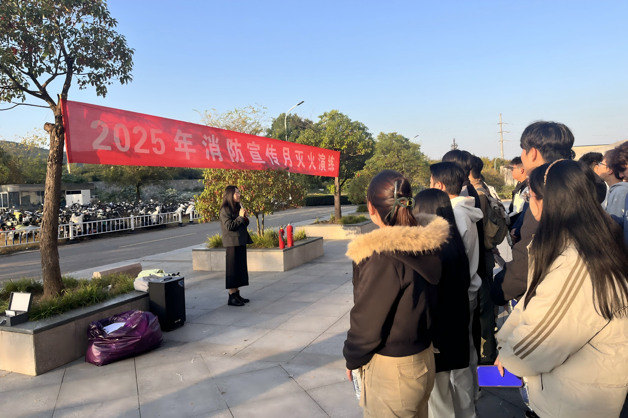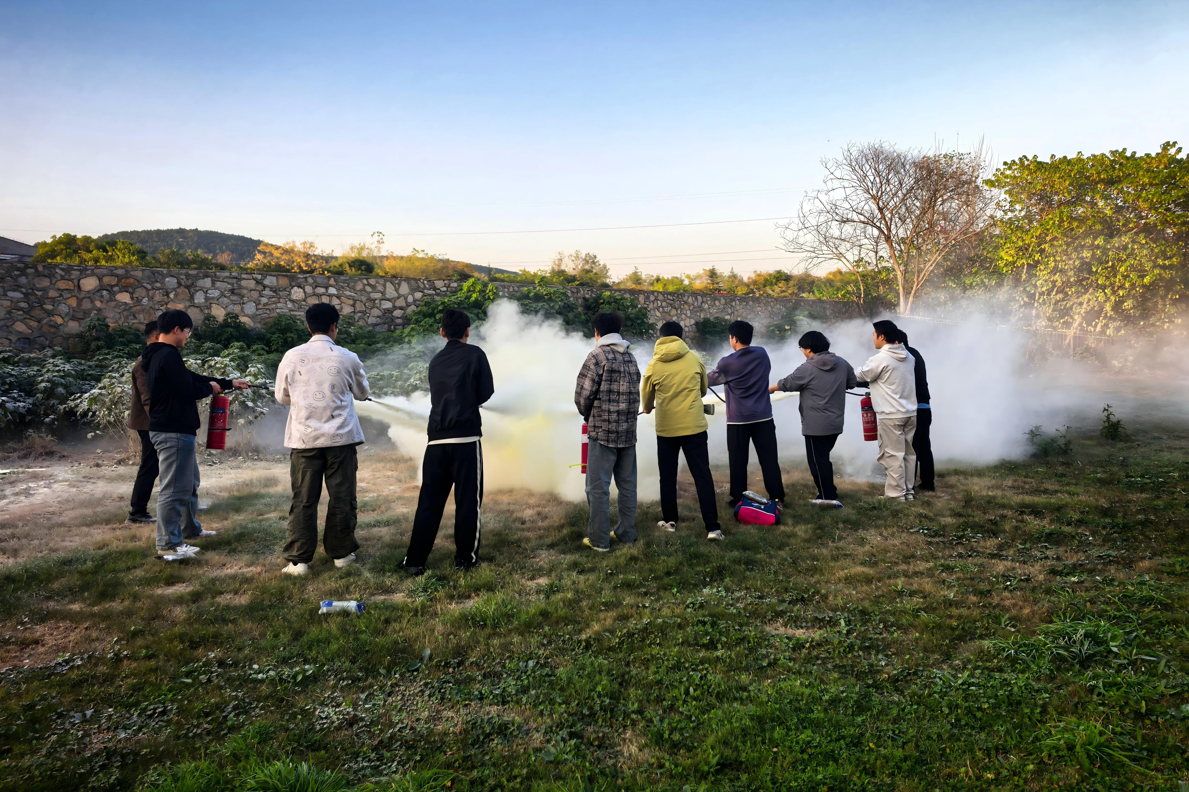 演练前,保卫处张媛媛老师结合校园火灾防控特点,简要介绍了校园内可能存在的火灾隐患和灭火方式。讲解了灭火器的使用原理及注意事项,并演示了灭火器使用中的“提”“拔”“握”“压”四个关键步骤和细节。随后师生们依次分组参与实战演练,整个过程安全、有序。