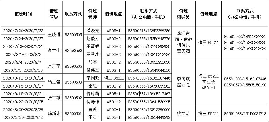 2020年暑期值班表