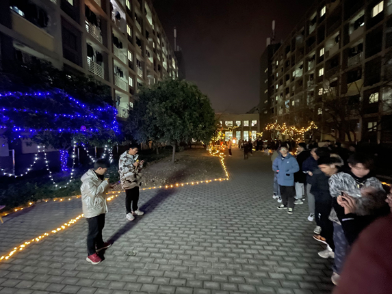 春风传喜讯,寅虎踏歌来,为迎接元旦的到来,营造节日气氛,丰富同学们的校园文化生活,1231日晚,矿业工程学校文艺部与安全学院于梅三宿舍楼联合举办的天井音乐节。