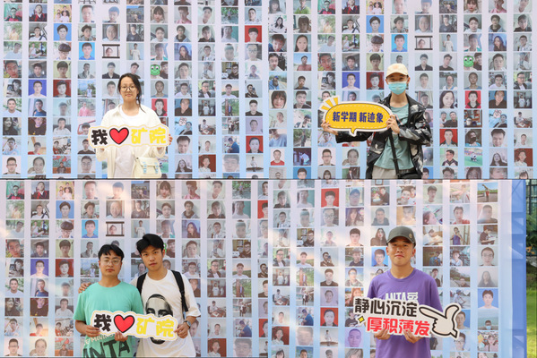 新生在签名墙前拍照留念