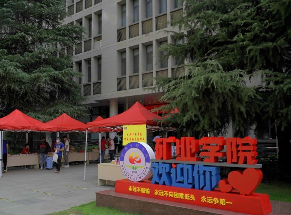 2021级新生顺利入学,感矿大关怀,我院于贝勒漫画 楼前和三食堂旁广场设立2021级迎新站点,帮助新生完成入学手续办理与行李安置。