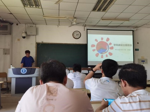 20级3班在博四C104开展了学风建设主题班会活动。本次活动旨在让同学们建立良好的自主学习意识,调动学习积极性,从而营造一个良好的学习氛围。班长王海彭、学委赵巍雯主持班会,班主任陆菜平和3班全体同学参加本次班会。