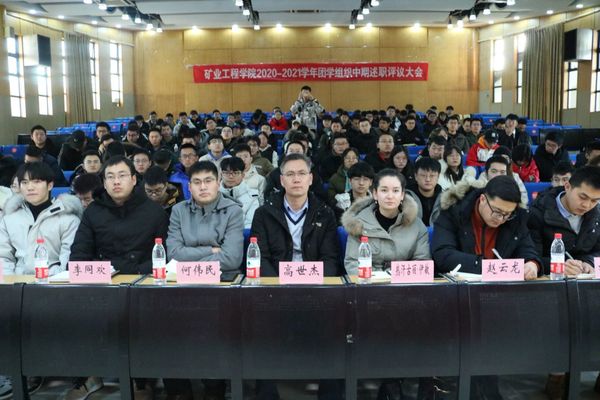 12月30日下午,矿业工程学院在镜湖大讲堂召开2020—2021年度学生组织中期述职大会。会议由马国英和王海彭主持,院党委副书记高世杰,各学生组织指导老师、主席团以及各部门全体成员参与本次会议。