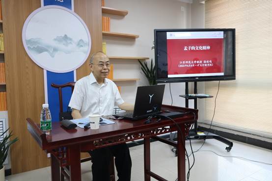 徐放鸣教授从弘扬中华优秀传统文化,增强文化自信讲起,阐释了中华优秀传统文化的精神标识和文化精神的内涵,并提出“理解文化应从鲜活的人物经历学起”。接着,徐教授以“孟子的文化精神”为题,从孟子其人与《孟子》其书、孟子的人格精神、孟子思想的当代价值三方面详细讲述了孟子思想的发展历程和孟子思想的文化精髓,并深刻阐释了孟子的文化精神对当今社会发展和对大学生的启示。