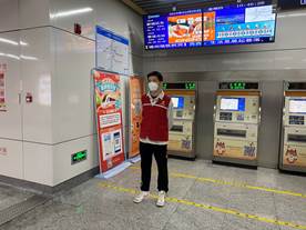 交通运输系莫祥伦、金晓红老师带领2019级全体学生前往徐州地铁1号线、2号线换乘点彭城广场站开展志愿活动。学生志愿者们身穿红色马甲分别在自动售票机、电梯口、进出站口等多个客流量较集中的点位进行志愿服务,引导乘客有序排队、保持安全距离,倡导文明乘车,面对乘客积极热情,为乘客提供路线引导、咨询帮助,与乘客一起维护安全、正点、整洁、舒心的地铁乘车环境,提高乘车整体满意度。