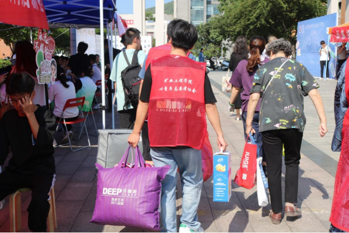 迎新志愿者帮助新生搬运行李