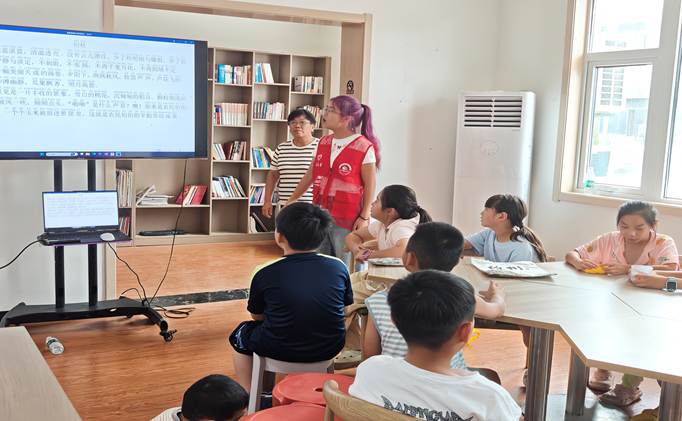 实践期间,团队成员清晨走进当地社区活动中心,带领小朋友们开展普通话晨读活动。为提升晨读效果,团队成员提前精心挑选了涵盖古诗词、经典童话故事、红色经典片段的多元读本。在晨读过程中,成员们通过领读示范、分角色朗读扮演、字词发音抢答等互动形式,引导孩子们逐步纠正方言发音习惯、感受汉语语言韵律;针对孩子们发音不准的问题,志愿者还进行一对一耐心示范,孩子们也积极举手参与模仿练习,现场互动氛围活跃。
